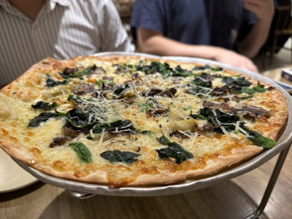 This was my personal favorite. The flavors were just chef’s kiss– rich, creamy, and perfectly balanced. I could have eaten the whole plate by myself, no exaggeration. The pizza itself had a very thin, almost flatbread-like crust, which made it surprisingly light and so addictive — I couldn’t stop reaching for another slice.